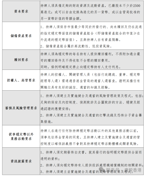 根據《穩定幣條例》“附表2:最低準則”,持牌人須至少滿足以下資格和門檻: