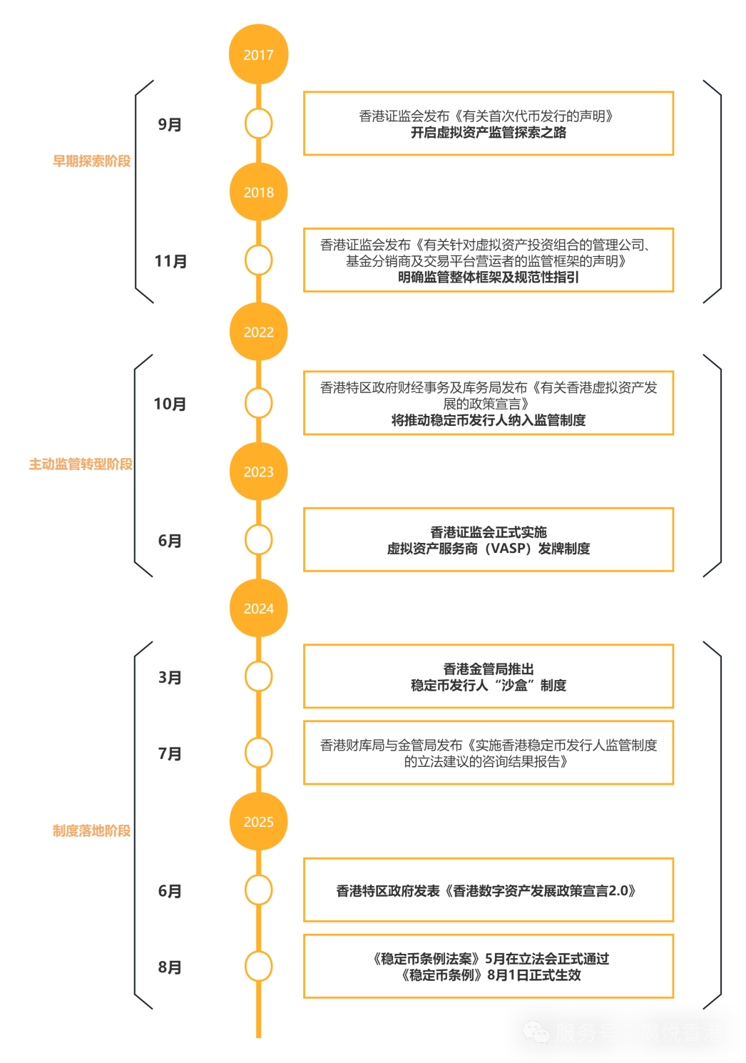 自2017年9月,香港證監會聲明部分首次代幣發行可能屬於《證券及期貨條例》所界定的“證券”,需納入監管,香港便開啟了虛擬資產監管探索之路。
